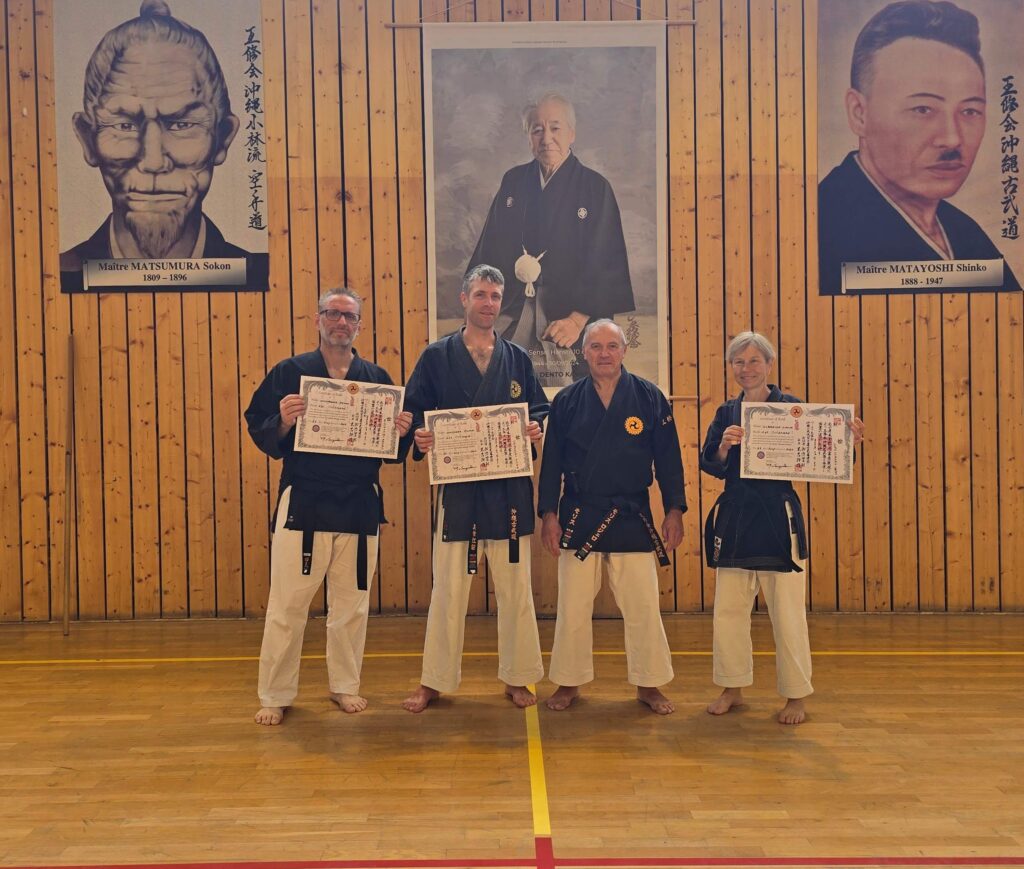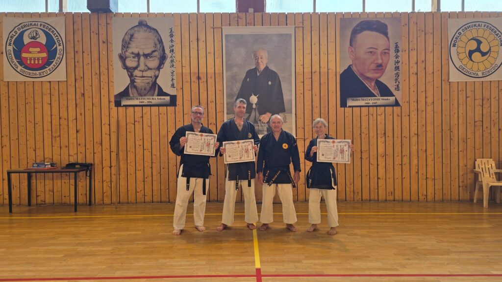 Die Kobudo-Prüfungen fanden im internationalen Sommerlager im Okinawa Kobudo in Thonon les Bains (F) am Genfersee statt unter der Leitung von Maurice Roggero (8. Dan), Kobudo-Head-Instruktor der World Oshukai Federation (W.O.F.). Die WOF ist der weltweit grösste Verband im Okinawa Kobudo, gegründet von Kobudo- und Karate-Grossmeister Kenyu Chinen aus Okinawa (10. Dan, 1944 – 2024).